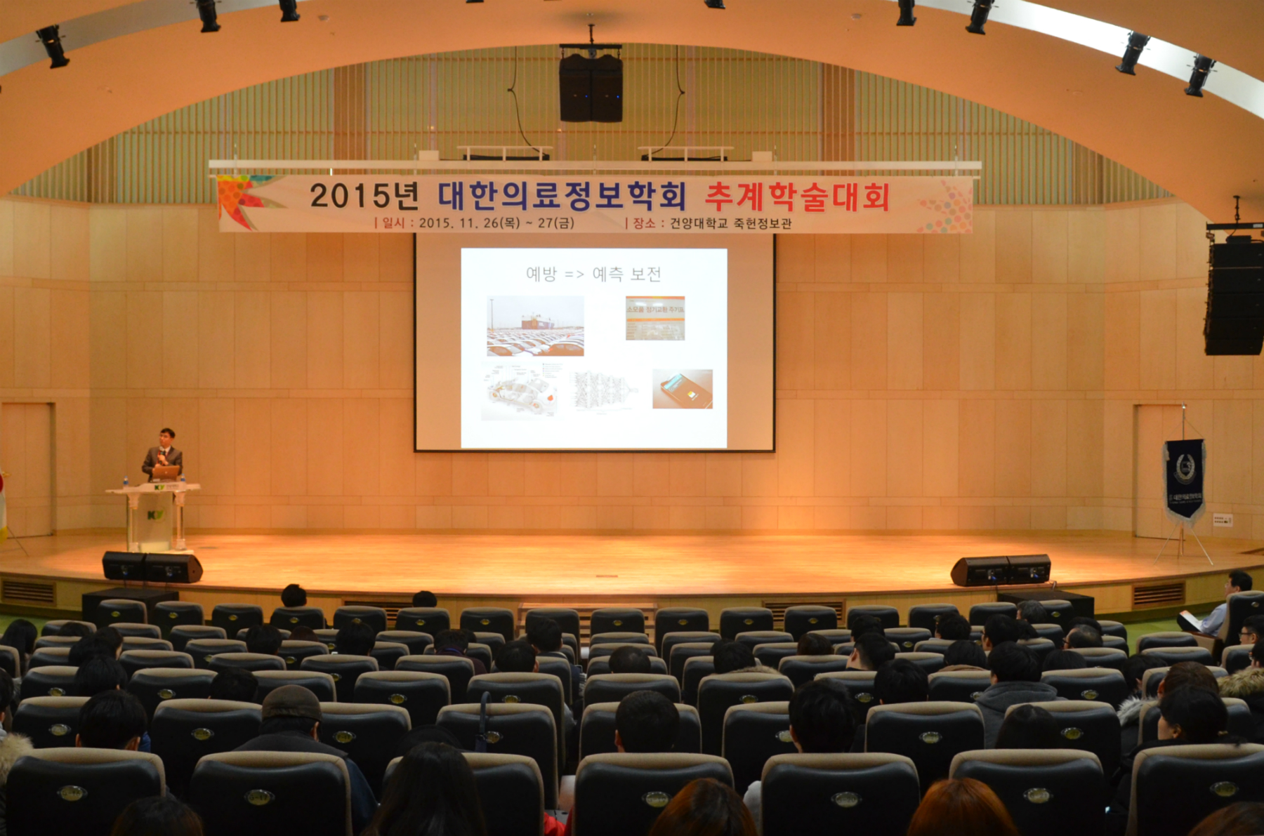 건양대에서 대한의료정보학회 추계학술대회 열려 대전 메디컬캠퍼스에서 이틀간 빅데이터 및 로봇기술 등 다양한 강연 눈길 건양대학교(총장 김희수) 대전 메디컬캠퍼스 죽헌정보관에서 26일과 27일 이틀에 걸쳐 (사)대한의료정보학회(회장 김명기) 2015 추계학술대회가 열렸다. ‘의료정보의 새 비전과 교육’ (New Vision and New Education for Medical Informatics)이라는 주제로 열린 이번 행사는 서울대학교 산업공학과 조성준 교수의 ‘빅데이터 분석’과 KAIST 기계공학과 오준호 교수의 '로봇기술과 미래' 특강이 진행됐다. 또한 벤처 기업 뷰노(VUNO Inc.)의 기술이사인 정규환 공학박사의 ‘딥 러닝’ 강좌와 가톨릭대학교 순환기내과 문건웅 교수가 진행하는 '웹에서 하는 R 통계분석' 섹션이 진행됐으며 그 외에도 디지털 헬스케어, 빅데이터, 환자주도형 건강관리시스템 및 개인건강기록 등 다양한 분야의 심포지엄과 자유연제 및 포스터 발표, 그리고 기업 전시부스가 진행됐다. 이번 학술대회 조직위원장을 맡은 박창일 건양대학교 의무부총장 겸 건양대병원 의료원장은 “현재 시대에 있어 의료와 IT산업은 뗄 수 없는 상호보완관계에 있기 때문에 함께 교류발전이 이루어져야 한다”고 강조했다.