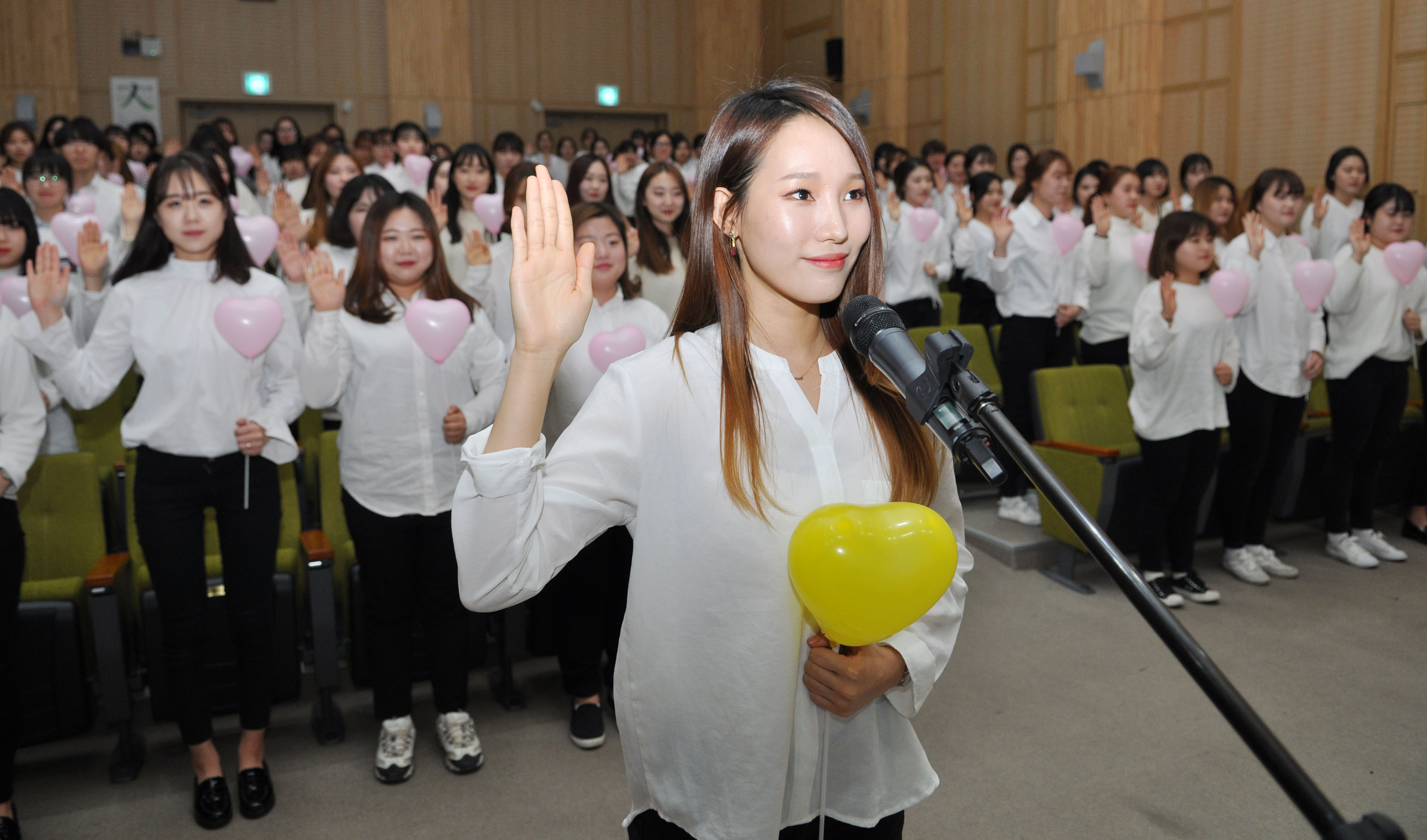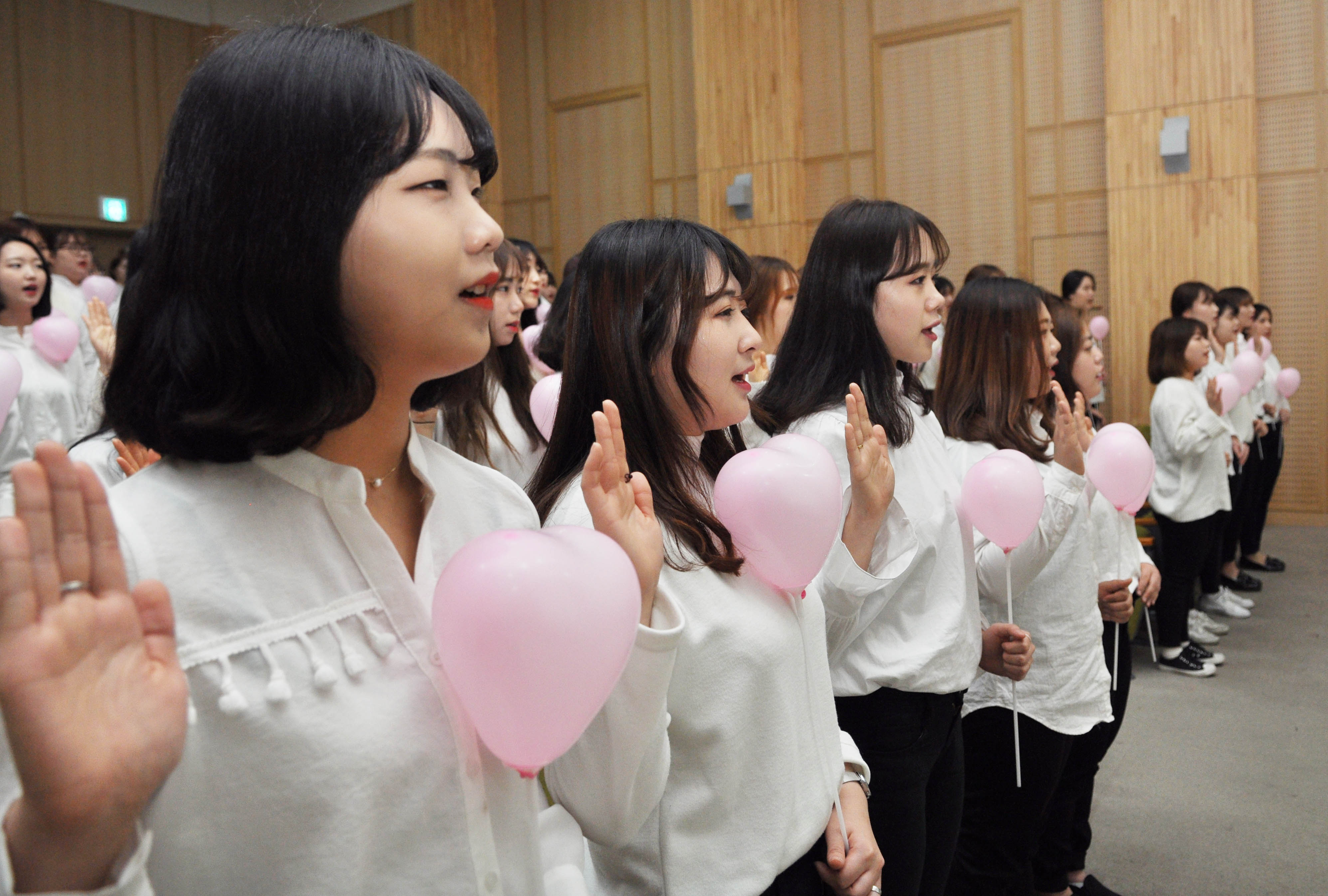 최근 끔찍한 아동학대 사건 및 어린이집 보육교사의 아동폭행 사건이 연이어 발생하면서 영유아교사들의 인성이 강조되는 가운데, 한 대학의 예비교사들이 좋은 교사가 되기 위한 윤리선언에 나서 관심을 끌고 있다. 건양대학교(총장 김희수) 영유아교육학부 학생 180명(아동보육학과 120명, 유아교육과 60명)은 18일 논산 창의융합캠퍼스에 모여 교사 윤리 선언문을 읽고 좋은 교사가 되기를 다짐하는 선언식을 열었다. 이번 선언식은 학생들이 곧 나가게 될 어린이집이나 유치원 실습에 앞서 아동의 권리를 존중하고 바른 인성을 갖춘 교사가 되겠다는 의지를 대외적으로 표명하고자 기획됐다. 특히 학생들이 자발적으로 학과 MT를 대신해 이번 선언식을 주도적으로 준비한 것으로 알려졌다. 건양대 영유아교육학부는 유보통합의 첫 걸음을 대학의 교사양성과정에서 시도한 첫 우수 사례이며, 2007년부터 건양대학병원 어린이집, 세종정부청사 윤빛어린이집, 계룡상록어린이집, 연무행복어린이집을 운영해왔다. 2015년에는 충남육아종합지원센터를 위탁받아 지역사회의 보육과 가정양육 지원에 크게 기여하고 있다. ※사진설명 : 좋은교사가 되기 위한 선언식을 하고 있는 모습이며 노란색풍선은 유아교육과, 분홍색 풍선은 아동보육학과 학생들이다.