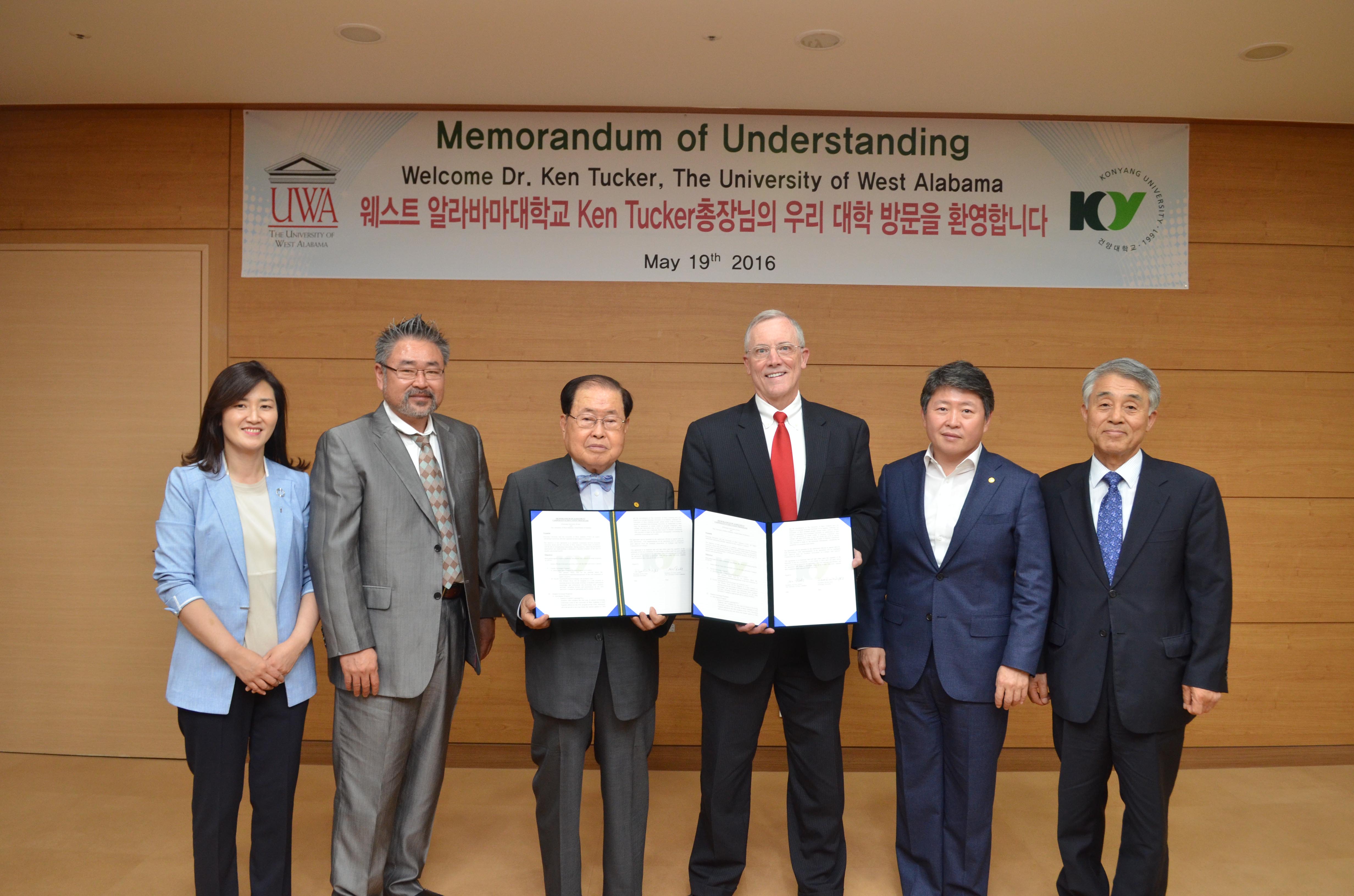 건양대학교(총장 김희수)는 19일 오전 논산 창의융합캠퍼스에서 미국 웨스트 알라바마 주립대학교(총장 켄 터커)와 상호교류 및 복수학위 프로그램에 대한 협약을 체결했다고 밝혔다. 이날 협약식에는 웨스트 알라바마 대학교의 켄 터커 총장과 한국인으로 현재 알라바마 대학에서 유기화학과 교수로 재임하고 있는 김윤호 교수가 직접 한국을 방문해 참석했다. 건양대에서는 김희수 총장, 김용하 교무부총장, 김현중 국제교육원장, 우수정 교수 등이 참석했다. 이날 양 대학교는 건양대학교에서 1학년을 마친 학생이 웨스트 알라바마 대학교에서 남은 학기를 등록해 공부하고, 양 대학이 요구하는 졸업요건을 충족한 경우 복수 학위를 수여하는 1+3 복수학위 프로그램에 대해 상호협약을 체결했다. 또한 건양대생은 교내 영어 프로그램 이수 및 영어능력시험을 통과한 경우에 웨스트 알라바마 대학교의 입학요건인 OEFL/IELTS에 대하여 면제를 받는 내용도 협약에 포함됐다. 김희수 총장은 “이번 협약이 우리 학생들이 해외에 나가 학문을 닦고 견문을 넓힐 수 있는 좋은 계기가 되기를 바란다”며 “앞으로도 대학뿐만 아니라 해외기업과의 적극적인 교류를 통해 해외로 유학 및 취업이 더욱 활성화되도록 노력할 것”이라고 밝혔다.