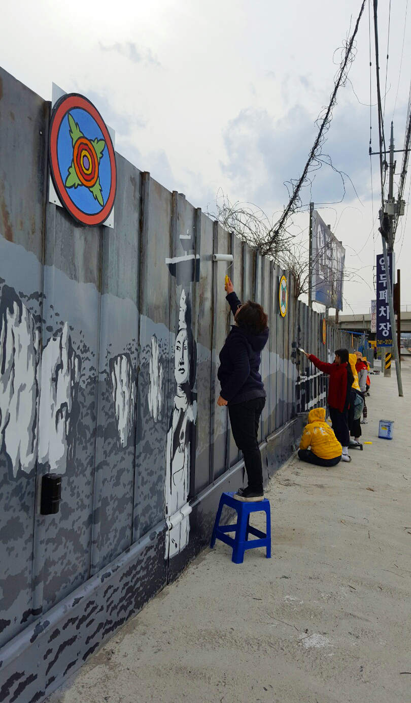 이번 거리벽화 작업에 참여한 시각디자인 전공 3학년 김리현 씨는 “처음에는 벽화 장소가 폐차장 철판벽이라는 것에 걱정을 했다. 왠지 폐차장에서 연상되는 냉랭함, 쓸쓸함 등의 이미지가 있었기 때문”이라고 밝혔다.