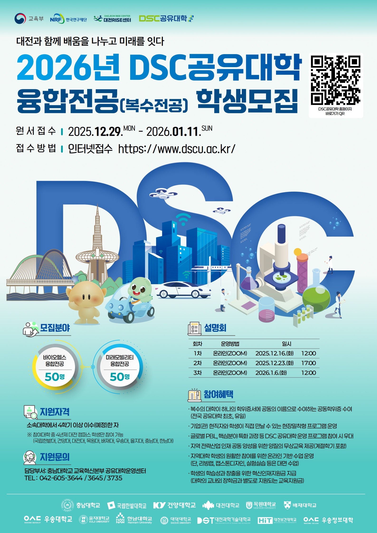 | 제목 | [메디컬캠퍼스 재학생 대상] 2026학년도 DSC 공유대학 융합전공(복수전공) 학생 모집 | ||||