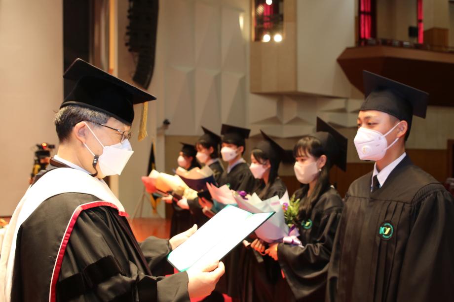 건양대는 코로나19 사태가 본격화된 이후 2020년은 학위수여식을 개최하지 않았고 2021년에는 소수의 대학 보직교수와 일부 학생만 참여하고 유튜브 생중계로 진행한 오픈형 학위수여식을 진행한 바 있다. 올해는 방역기준에 따라 참석인원을 299명 미만으로 제한한 가운데 사전 방역패스 기준을 통과한 학생을 대상으로 발열확인 및 QR코드 전자출입명부를 작성하는 방식으로 코로나 상황 이후 첫 대면 학위수여식을 개최하게 됐다. 이날 참석하지 못하는 학생과 학부모, 교수들을 위해서는 학위수여식 현장을 생중계해 건양대 공식 유튜브 채널 ‘건양튜브’를 통해 실시간으로 참여할 수 있도록 했다. 이날 학위수여식에는 졸업을 축하하기 위해 건양대 설립자 김희수 명예총장과 건양교육재단 김천중 이사장, 건양대 이철성 총장, 건양대 의학과 95학번 구훈섭 동문회장 등이 참석했다. 박사 12명, 석사 124명, 학사 1,524명 등 총 1,660명이 학위를 취득한 이날 학위수여식에서는 일반대학원 박사과정 군사학과 김명렬 씨와 석사과정 의학과 김민정 씨가 최우수논문상을 수상했으며 학부에서는 재활퍼스널트레이닝학과 김솔잎 씨가 4년 전액 장학금 및 우수한 성적으로 대상을 수상했다.