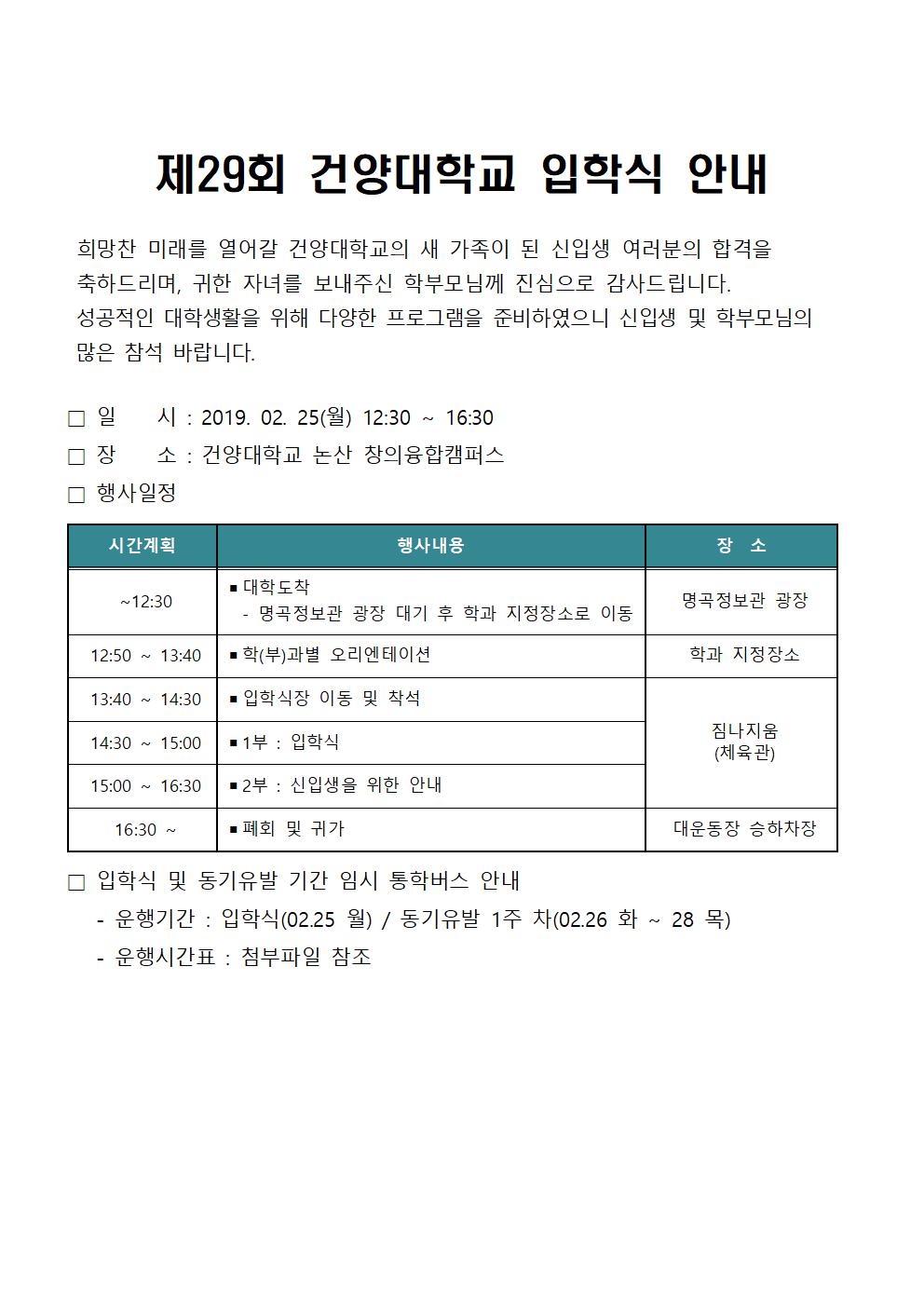 | 제목 | 제29회 건양대학교 입학식 안내 | ||||