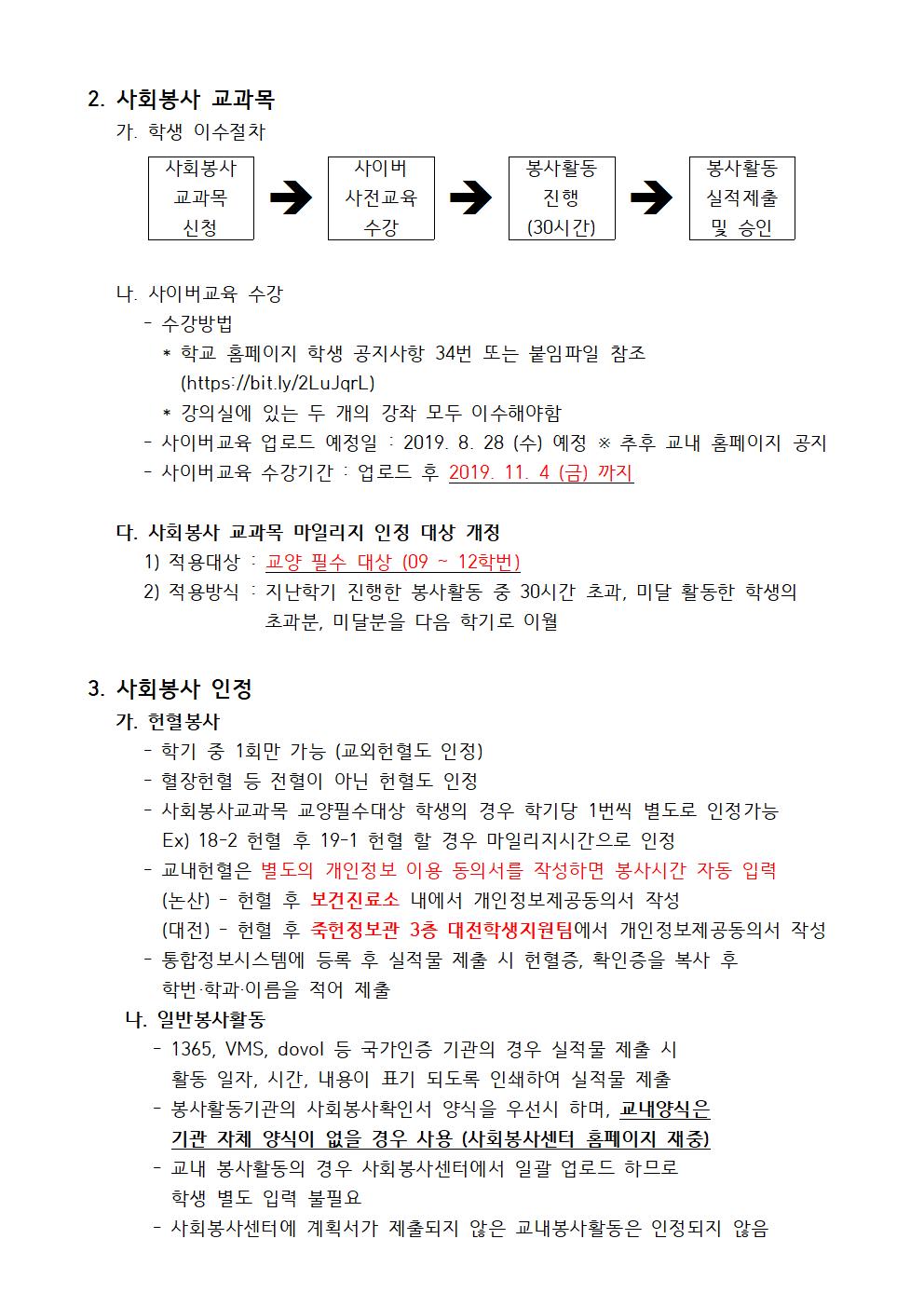 | 제목 | 2019학년도 2학기 사회봉사 활동 안내 | ||||